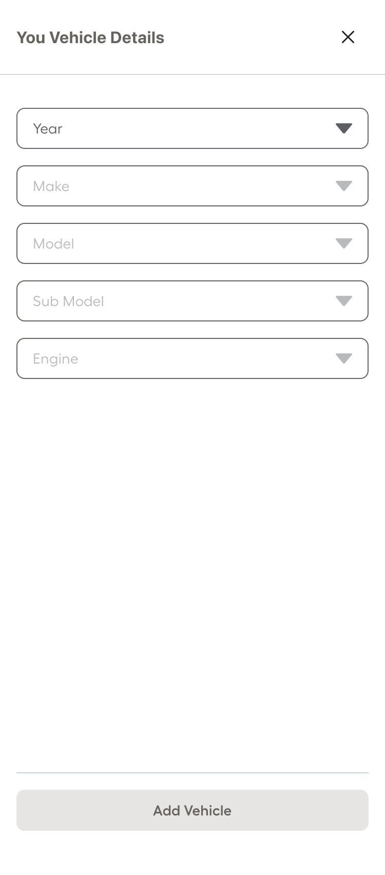 Users preferred the embedded dropdown layout (top image) because it made the vehicle selection process immediately visible and actionable within the page context. Having the Year, Make, Model, Sub Model, and Engine fields persistently displayed reduced interaction cost and reinforced transparency around how fitment was determined.