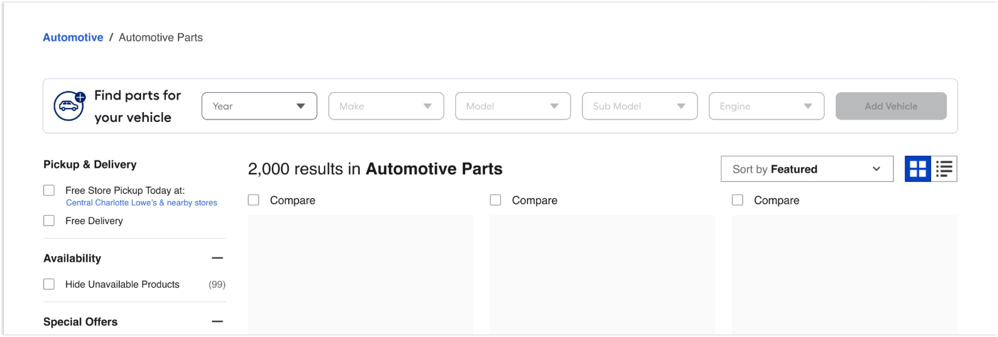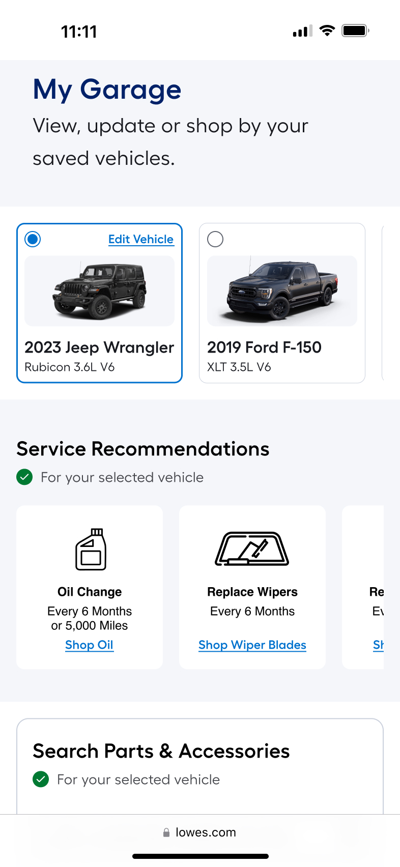 Customers lack a seamless, confidence-driven way to shop for vehicle-specific parts on Lowes.com. They struggle to verify compatibility at the point of purchase and have no persistent way to save their vehicle information for future visits, leading to friction, hesitation, repeat data entry, incorrect purchases, and missed opportunities for personalization and retention.